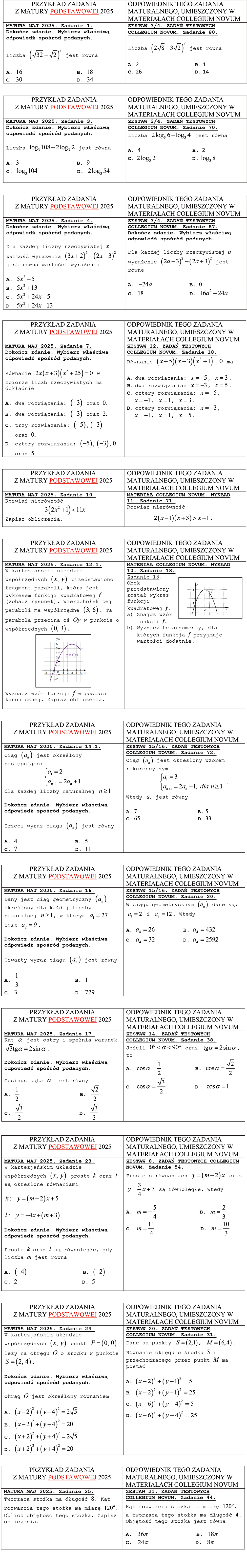 Program w pełni zgodny z podstawą programową CKE. Obejmuje wszystkie zagadnienia wymagane na egzaminie maturalnym z matematyki na poziomie podstawowym.